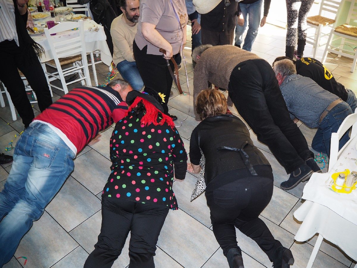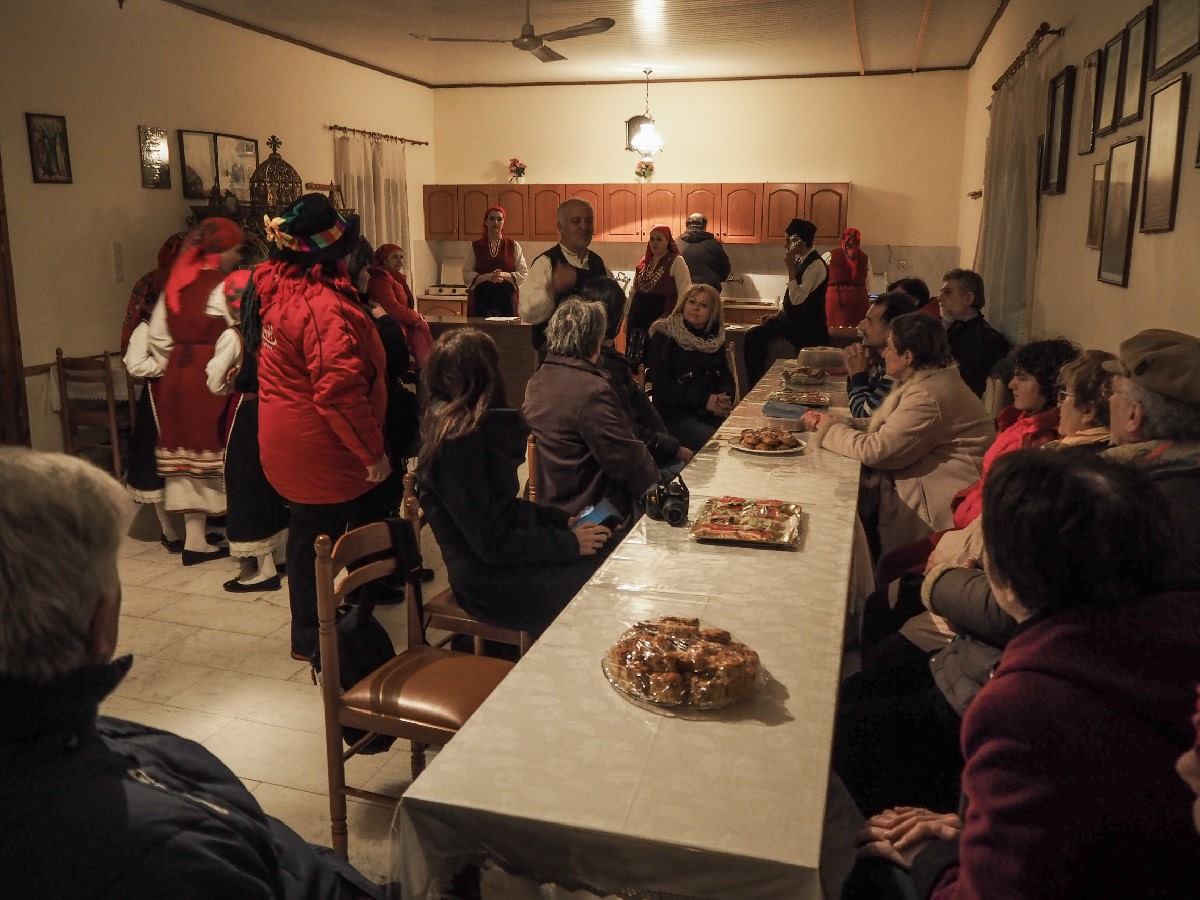 Ο Πολιτιστικός Σύλλογος Κυργίων «Αρίων», με πρόεδρο τον κ.Μιχάλη Φουνδουλάκο, και μέλη του συλλόγου μας καλοδέχτηκαν στην ταβέρνα «το στέκι του Μπαλιούρα» με χαρούμενα τραγούδια και μας γνώρισαν την Κυργιώτικη φιλοξενία αλλά και την πολιτιστική μουσική κληρονομιά του τόπου και των κατοίκων. Ενώ γευτήκαμε τοπικές νοστιμιές όπως «φάβα» και άλλα εδέσματα και γλεντίσαμε χορεύοντας  σε ρυθμούς Κυργιώτικης αποκριάς με τσαμπούνα και τραγούδι.. «πιπεράτο» από την παρέα Κυργιωτών που μας συνόδεψε.